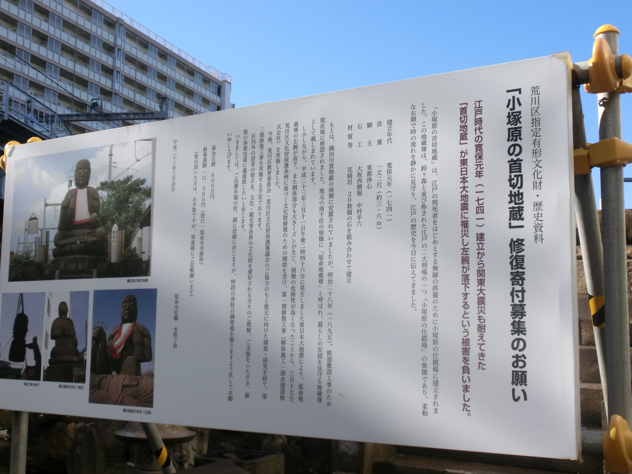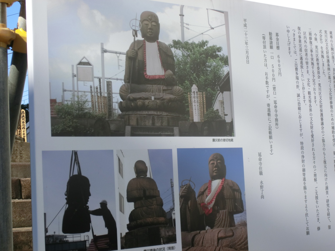 地蔵の修復のための寄付お願いの看板が立てられていました。