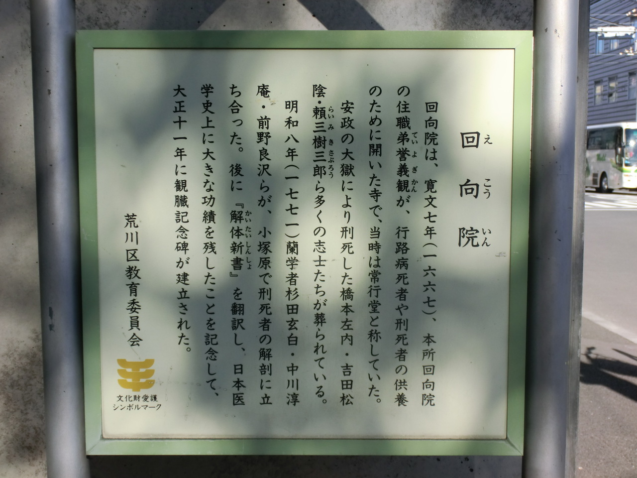 江戸時代,小塚原の刑死者の腑わけを行った場所なのだそうです。