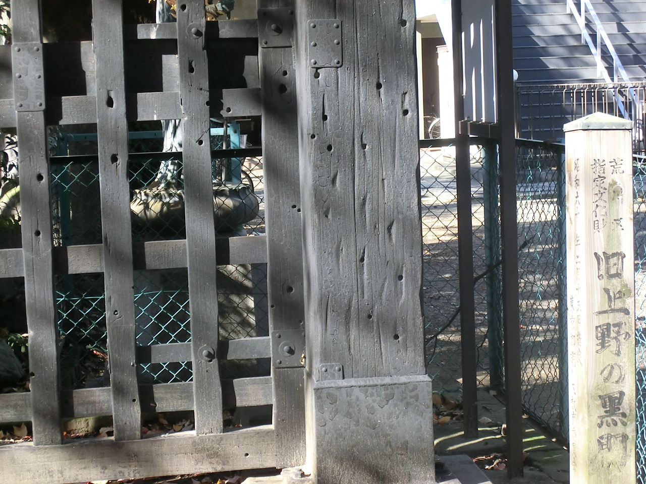 黒門にある穴は弾痕なのだそうで,裏側にまわってみると弾痕