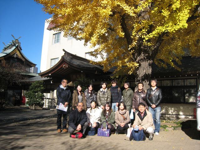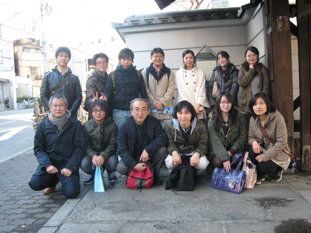 浄閑寺で集合写真。今回の参加者は,学部学生5名,