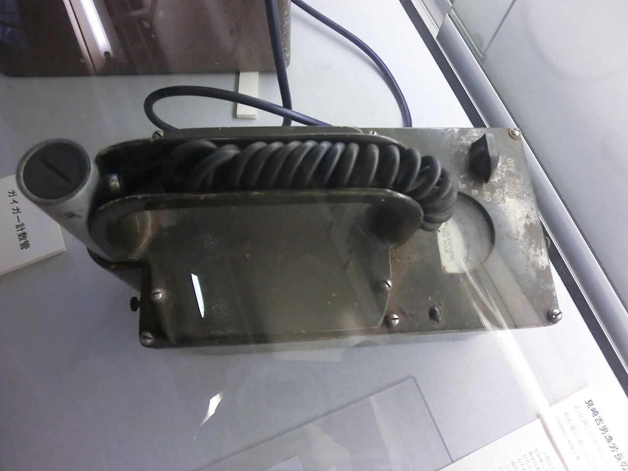 展示の写真にも,これらサーベイメータでマグロの放射能を測定している ものがあります。「原爆マグロ」とか「原子マグロ」などと当時は 呼ばれたらしい。 |