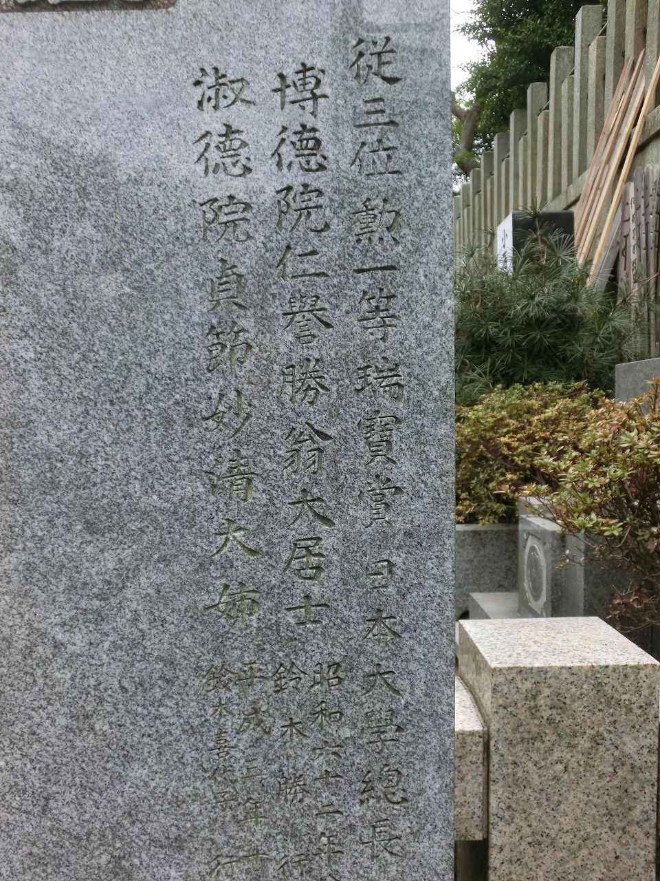 下の2枚は,日大総長にして,松戸歯学部創設者・鈴木勝のお墓です。 |
