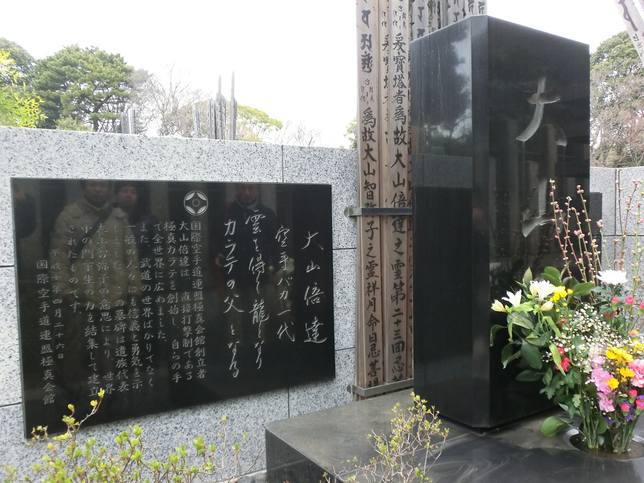 近くに極真空手の大山倍達のお墓もあり,きれいな花も活けられていました。 |