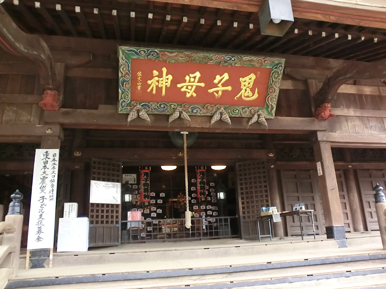 少し歩いて,鬼子母神に来ました。 清土から出土した鬼子母神像が,ここに祀られています。 |