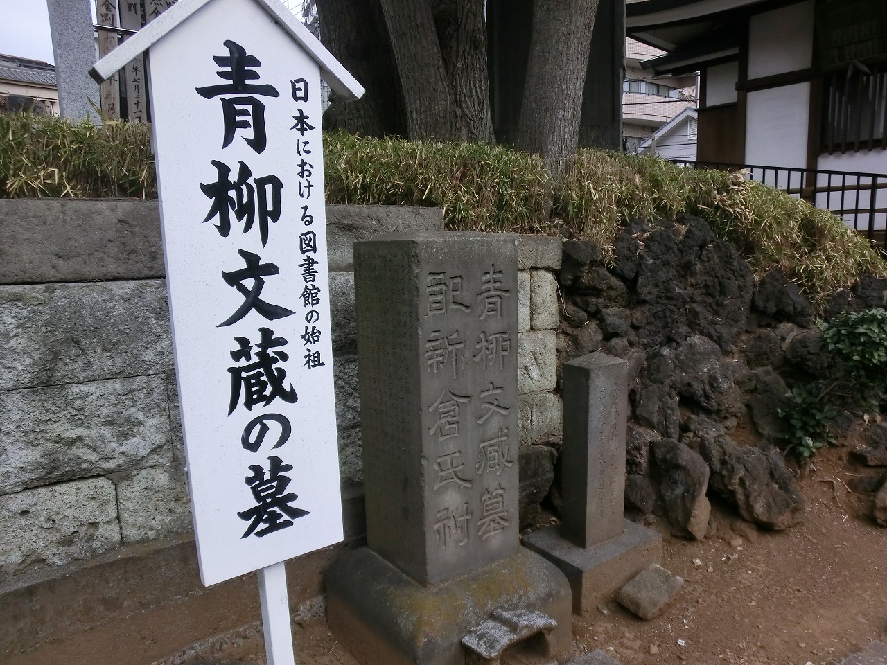 鬼子母神の参道をあるき,目白不動尊に来ました。 ここには,日本の図書館を初めて作ったという青柳文蔵のお墓があります。 青柳は1831年,仙台藩に書籍を寄贈し,藩はこれを一般に公開にしたため, これが日本の図書館の最初となったらしい。 また,丸橋忠弥のお墓がありました。徳川3代将軍家光が48歳で亡くなると, 家綱が11歳で第4代将軍となる。家光に反発した由井正雪・丸橋忠弥らが 幕府転覆を計画するも,事前に発覚して終わるというのが慶安の乱です。 由井は静岡で捕らえられ,江戸にいた丸橋は磔にされて処刑されたという。 |