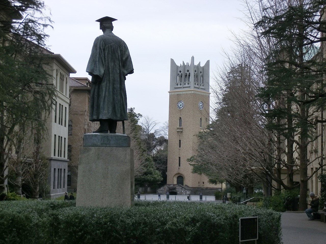 ここから番外編です。 早稲田大学の中を抜け,メトロ東西線の早稲田駅に来ました。 ここからの上り坂が,『夏目坂』です。 |