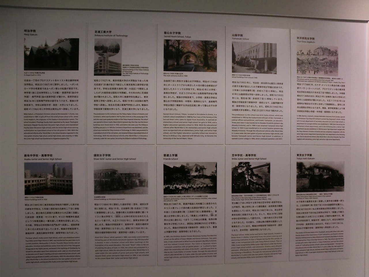常設展として,港区の歴史が並べられています。それは縄文文化から始まり, 現在の姿までがあります。 港区には多くの大学や高校が存在します。日本が開国し築地に居留地が 設けられ,そこを発祥とする学校がその後港区に校地を移したからだそうです。 |