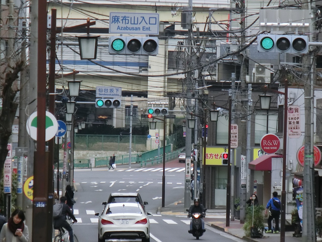 韓国大使館と道を挟んだところに,プロシア公使館跡があります。 現在は駐車場となっており,この看板が寂しくたっているのみ。 仙台坂を下りきったところが仙台坂下。 麻布山入り口でもあるらしい。 |
