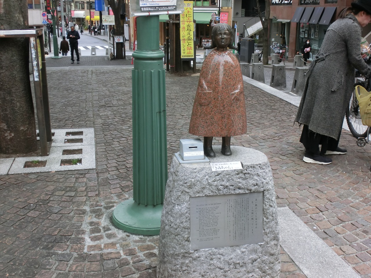 麻布十番の中華料理店で昼食にしました。今回は教職員8名の参加でした。 左はパティオ十番にある「きみちゃん像」。赤い靴はいてた女の子~♪の 子です。 |