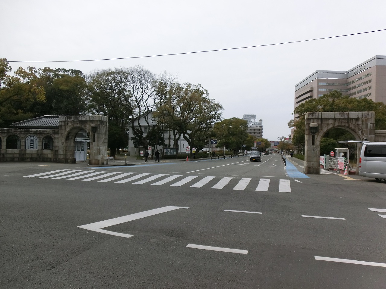 九州大学医学部の正門から入ってすぐ左のところに医学歴史館。 正門を入って右は九州大学病院。 |