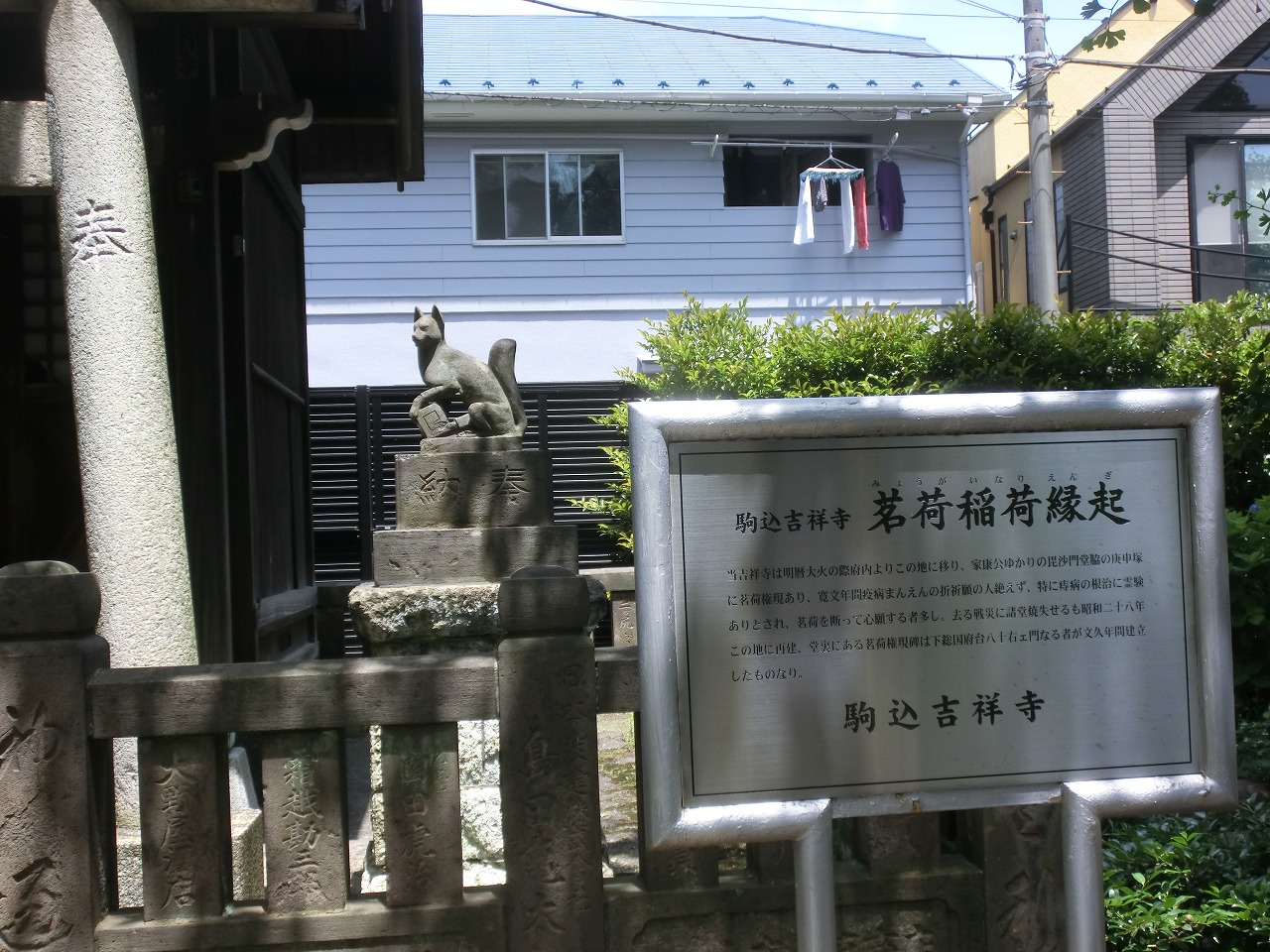 駒込富士神社 建立年不明。旧本郷村にあったが,1629年加賀藩上屋敷を賜るにあたり浅間社が この地に移転。社伝によれば,1356~61年には既に現在の社地は富士塚と呼び, 大きな塚があった。この塚は一説によると前方後円墳。 |